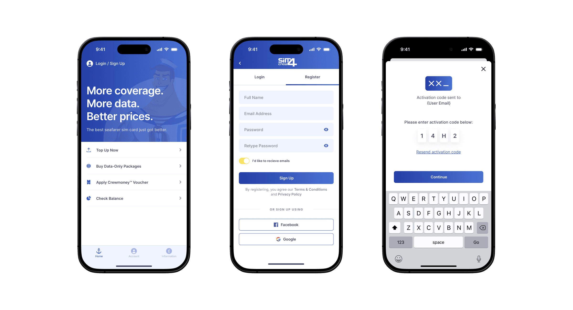 Singapur merkezli, yalnızca denizcilere özel SIM hizmeti sunan Sim4Crew için kullanıcı odaklı arayüz tasarımları hazırladık.
